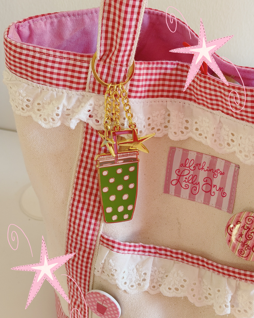 I honestly can't believe it took me this long to create these!!! Something about the dangly stars and the iced coffee + coozie is the cutest thing in the world to me! So cutie for your bag (I have mine on our totes) or on your keys, bookbag, etc!